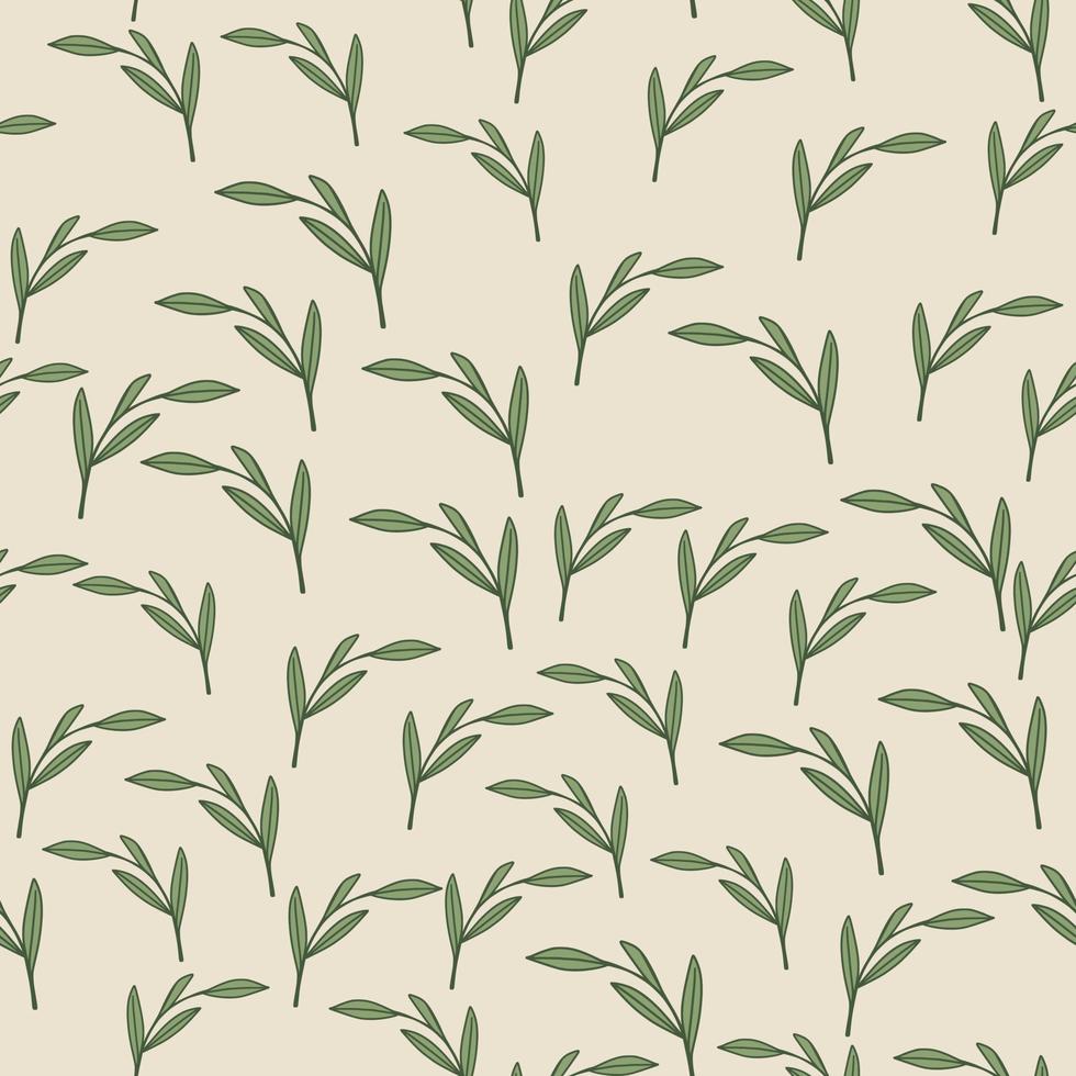 Decorative seamless pattern with little green random leaf branches ornament. Grey background. Simple print. Pro Vector