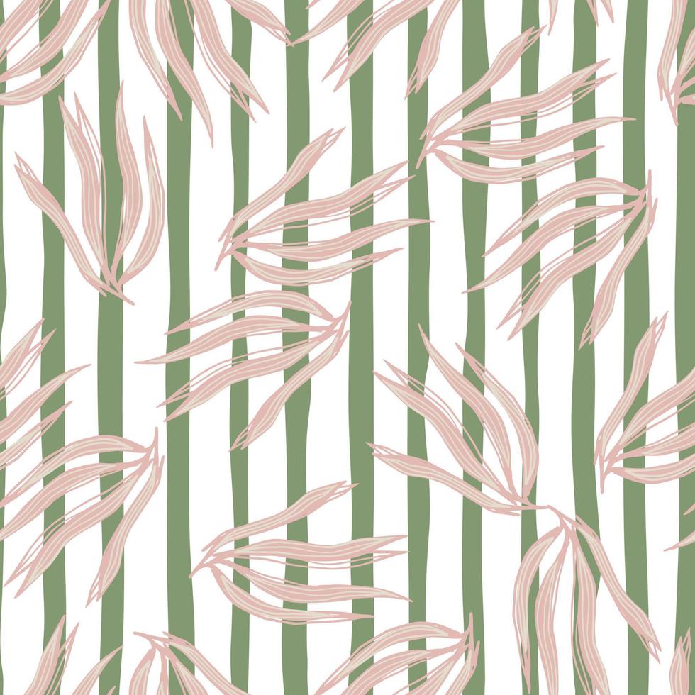 Random seaweeds seamless pattern on stripe background. Pro Vector
