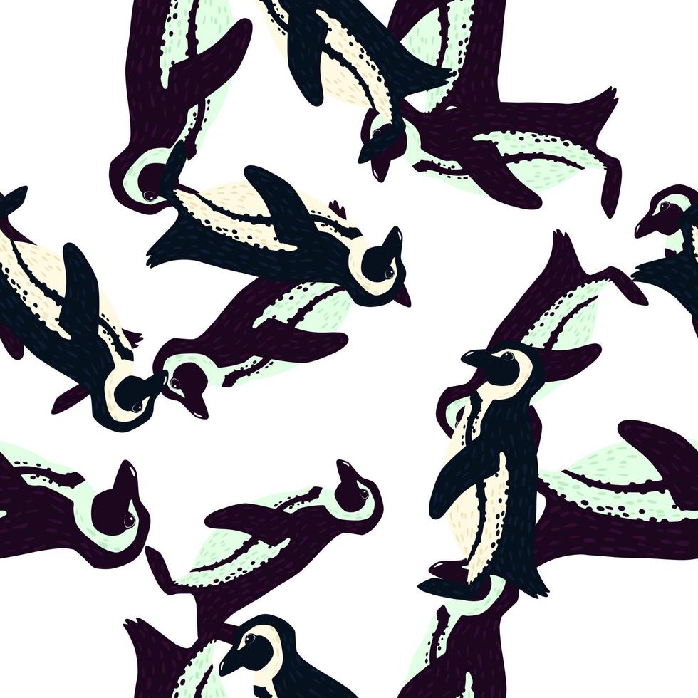 Isolated random seamless pattern with doodle penguins silhoettes. White backround. Abstract zoo backdrop. Pro Vector