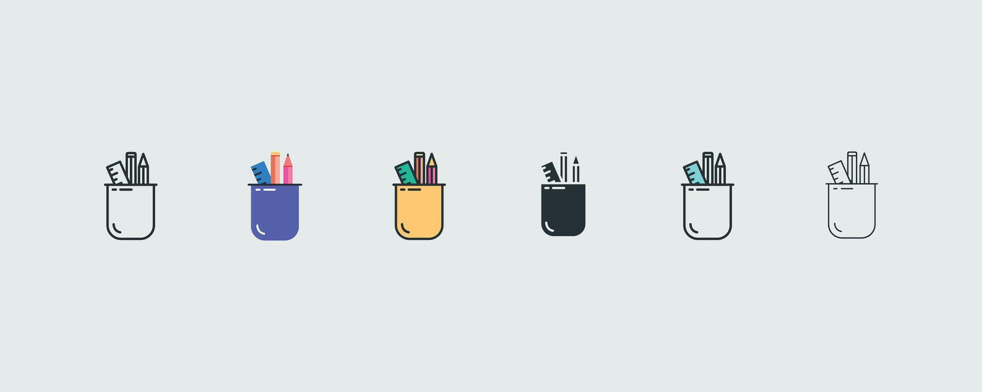 Pencil Case Icon Set In 6 Variations For Web And Ui illustration Pro Vector