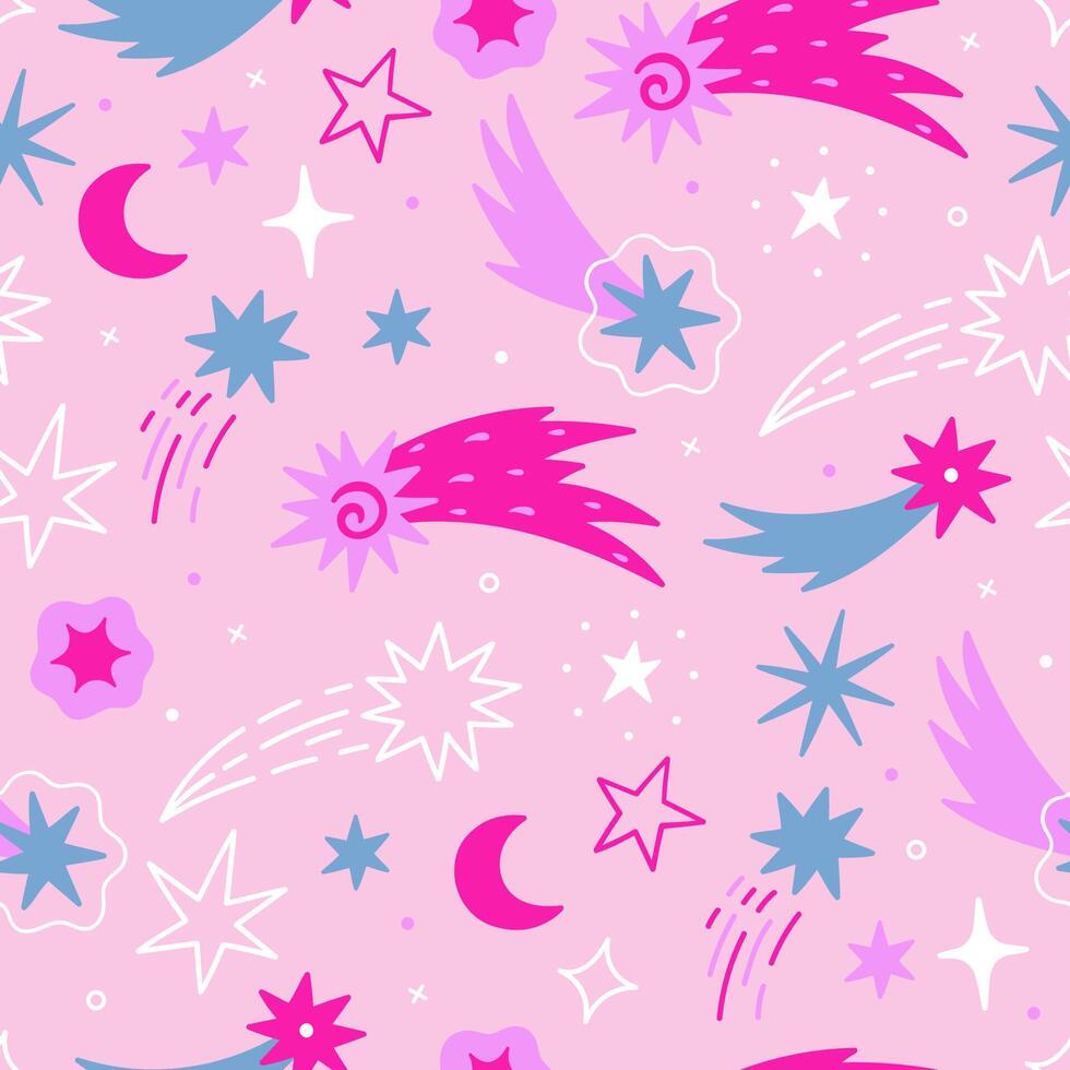 Seamless pattern with stars and comets on a pink background. graphics. Pro Vector