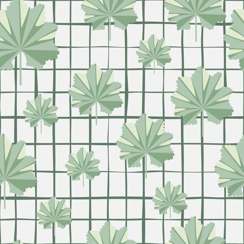 Random light green abstract jungle leaf elements seamless pattern. Grey chequered background. Doodle print. Pro Vector
