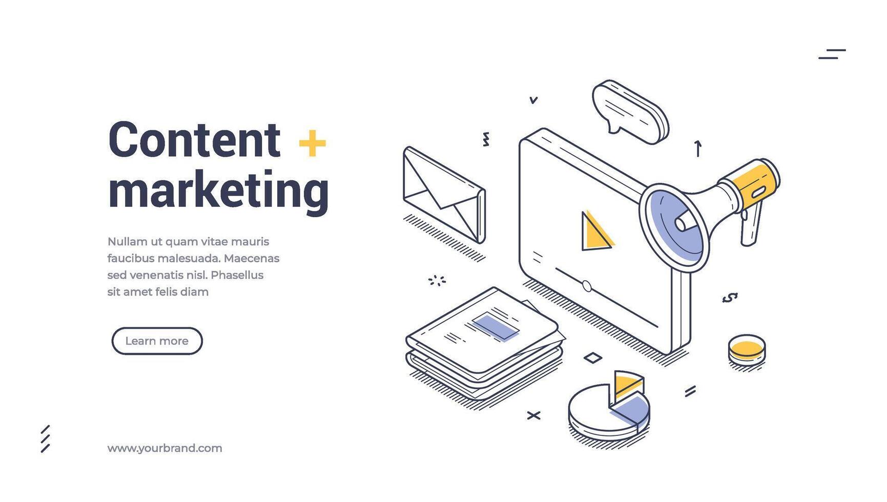 Digital content marketing tools and elements in a creative design web banner layout Pro Vector