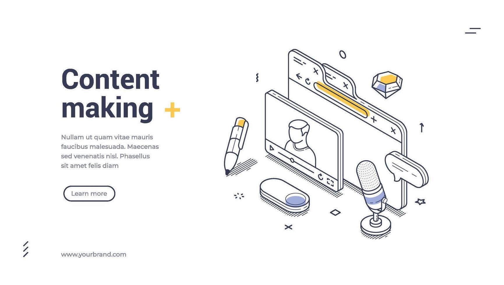 Modern digital content maker isometric web banner in line art style Pro Vector