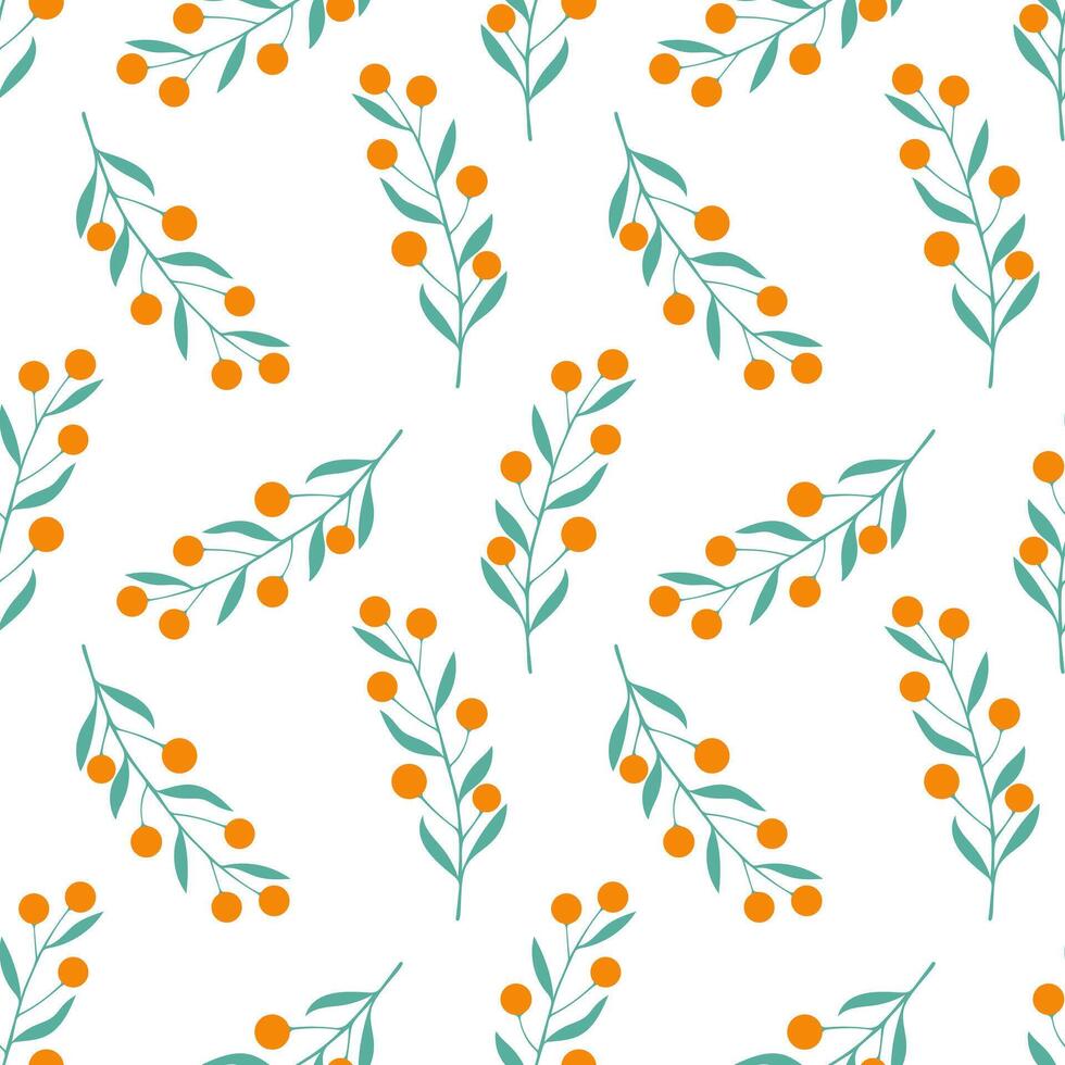 Mandarines pattern, tangerine clementine with leaves stylized drawing, pattern on white background. Pro Vector