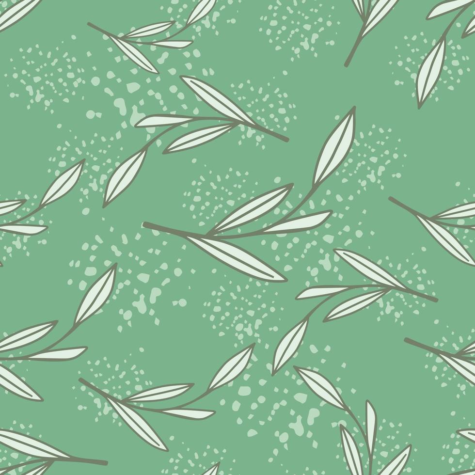 Foliage abstract seamless pattern with grey random outline leaf branches print. Green background with splashes. Pro Vector
