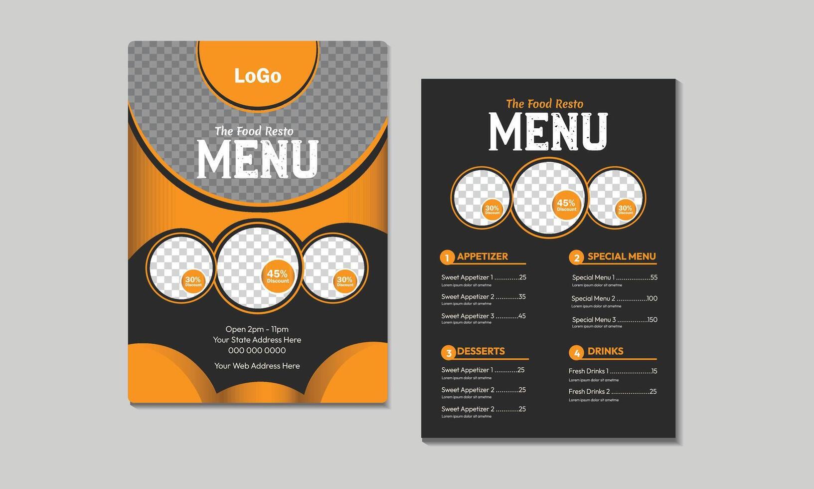 Restaurant Food Menu design template flyer poster leaflet brochure template design. Set A4 menu editable file format. Pro Vector