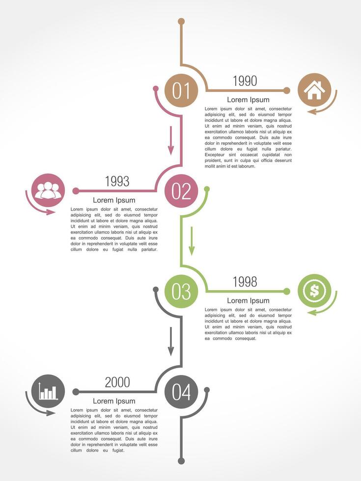 Timeline infographics design template with place for numbers, dates, icons and text Pro Vector