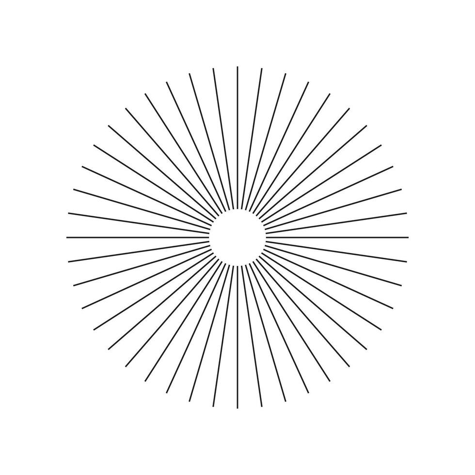 Radial circle lines template. Spokes with radiating stripes. Circular lines flat element. Symbol of Sun star rays. Design minimalist element. Abstract illusion geometric modern shape. Pro Vector