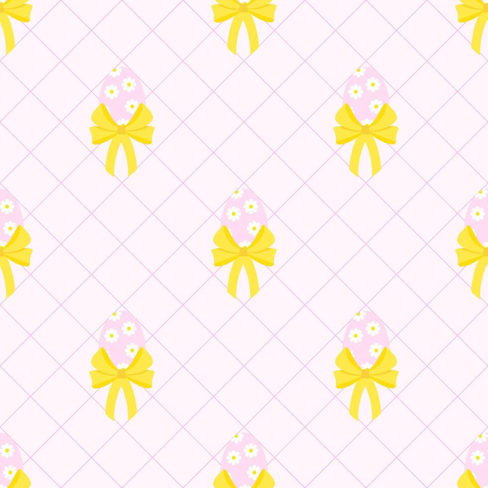 Seamless pattern of pastel Easter eggs with bows and diagonal lines on a pink background Pro Vector