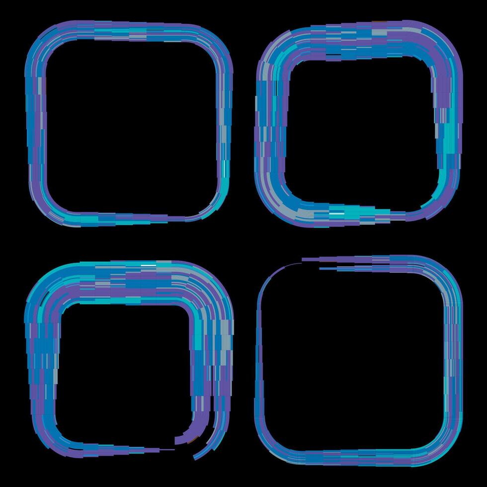 Set of four square frames with dynamic and futuristic aesthetics creating a sense of movement and energy. Ideal for technology-based presentations software interfaces and futuristic branding. Pro Vector