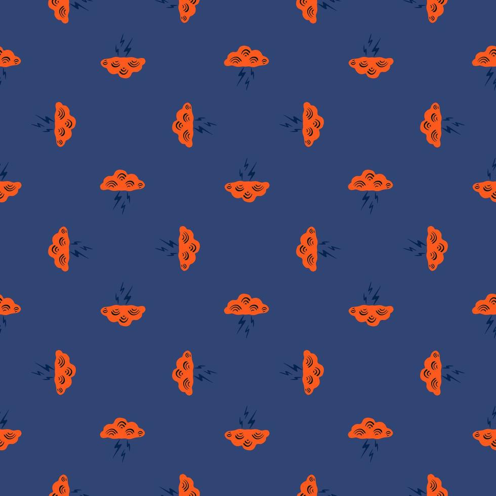 Clouds with lightning of seamless pattern. Cute hand drawn background. Pro Vector