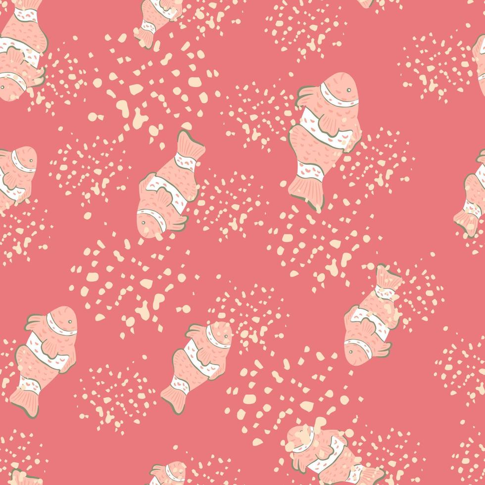 Abstract marine seamless pattern with random clow fish silhouettes. Background with splashes. Pink palette. Pro Vector