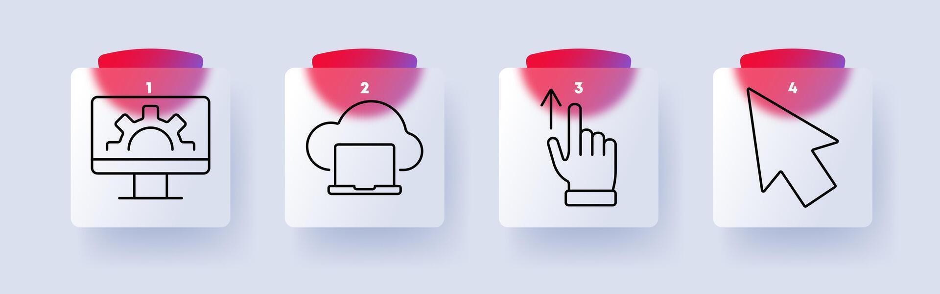 Digital technology and web set icon. Computer settings, cloud computing, touch interaction, cursor, online operations, internet navigation, cloud storage, web management Pro Vector