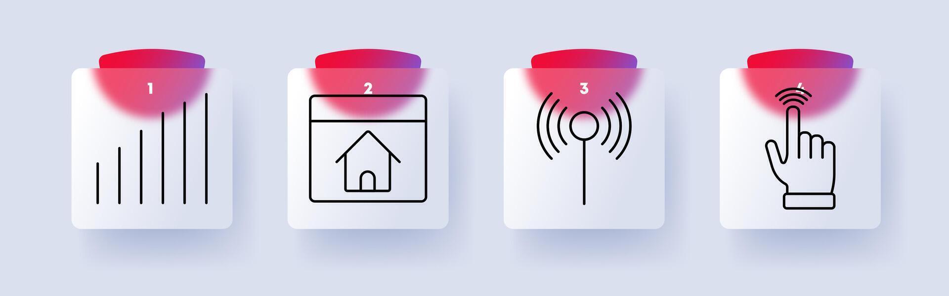 Connectivity set icon. Growth chart, smart home, wireless signal, touch command, network, technology, data transmission, digital automation, online communication. Pro Vector