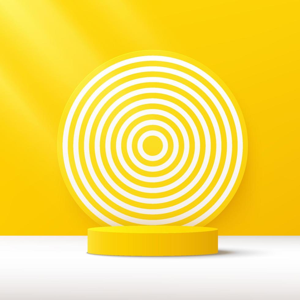 Abstract yellow cylinder pedestal podium, Bright yellow ,white spiral backdrop, Shadow of window. Vector rendering 3d shape, Product display presentation. Studio room concept, Minimal wall scene. Pro Vector