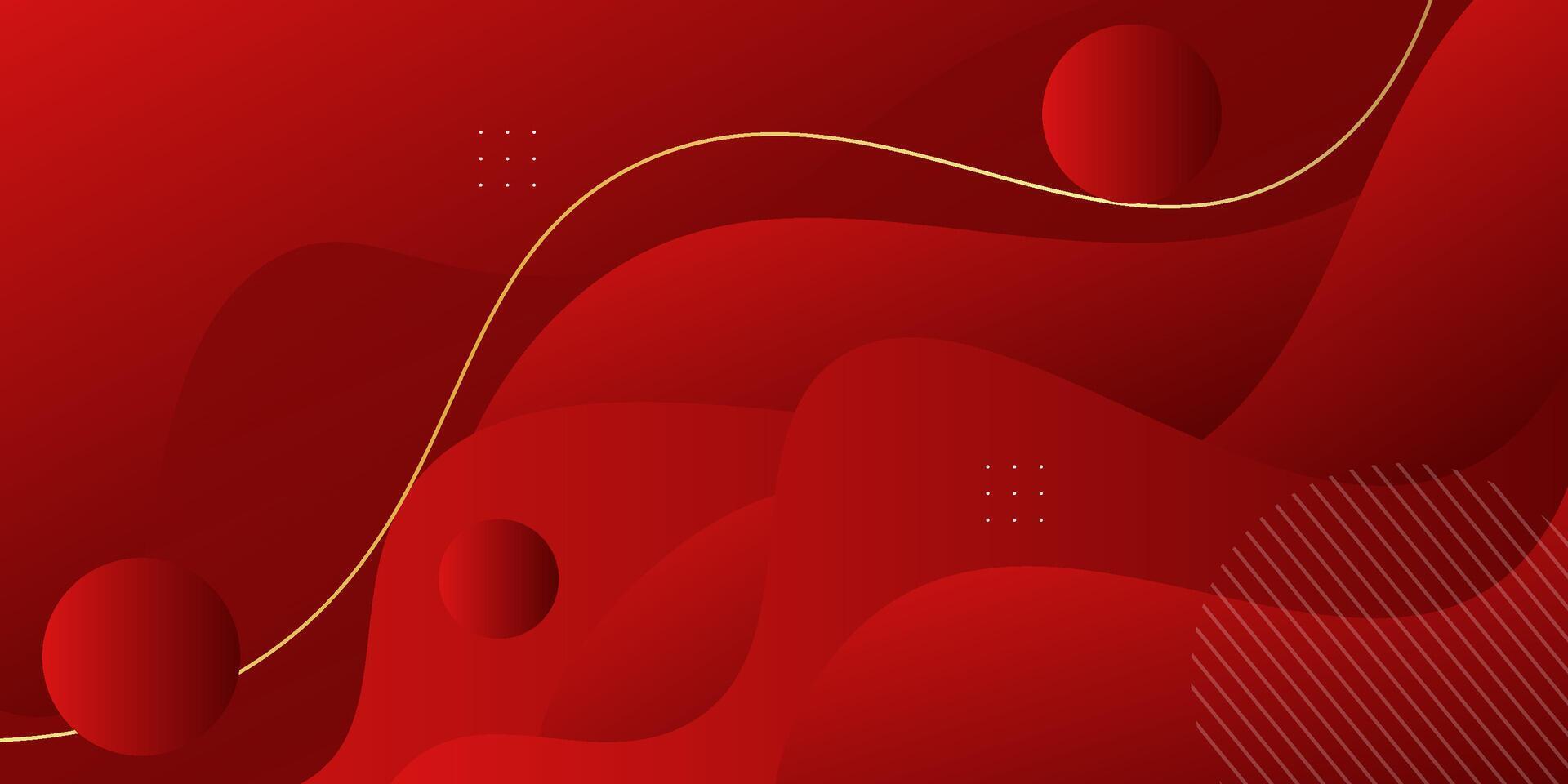 Red wave geometric design on background. Creative banner design with wave shape and gold lines as template. Simple horizontal banner. eps10 Pro Vector