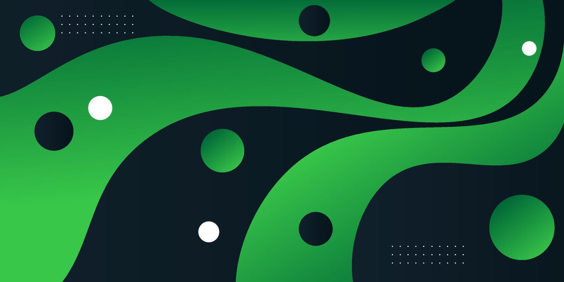 Dark green wave background with simple shapes. Simple green wave design. Modern geometric shape concept. Pro Vector