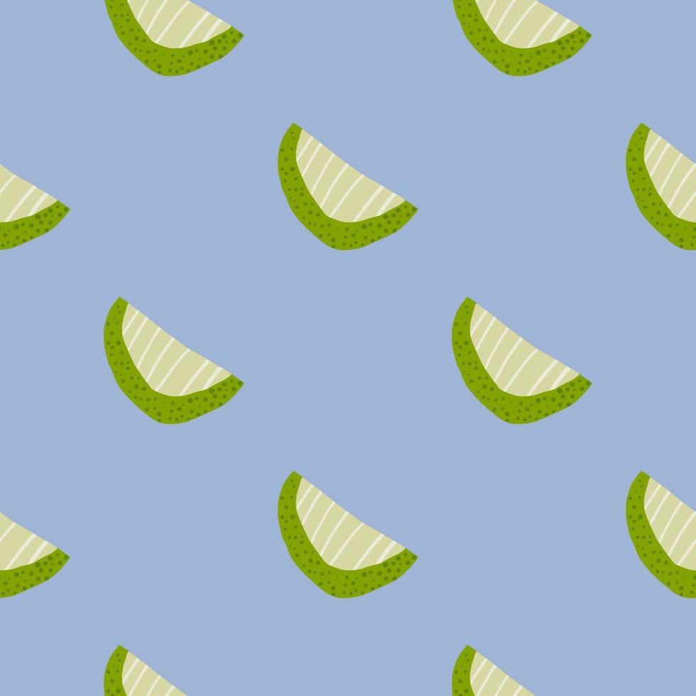 Simple minimalistic seamless pattern with clices forms. Green and light fruit shapes on blue background. Pro Vector