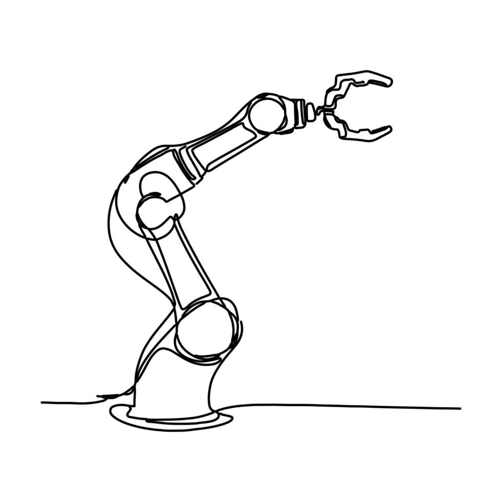 The robotic arm, an example of minimalist style, is designed as a line art drawn with a single continuous line, isolated on a white background. Pro Vector