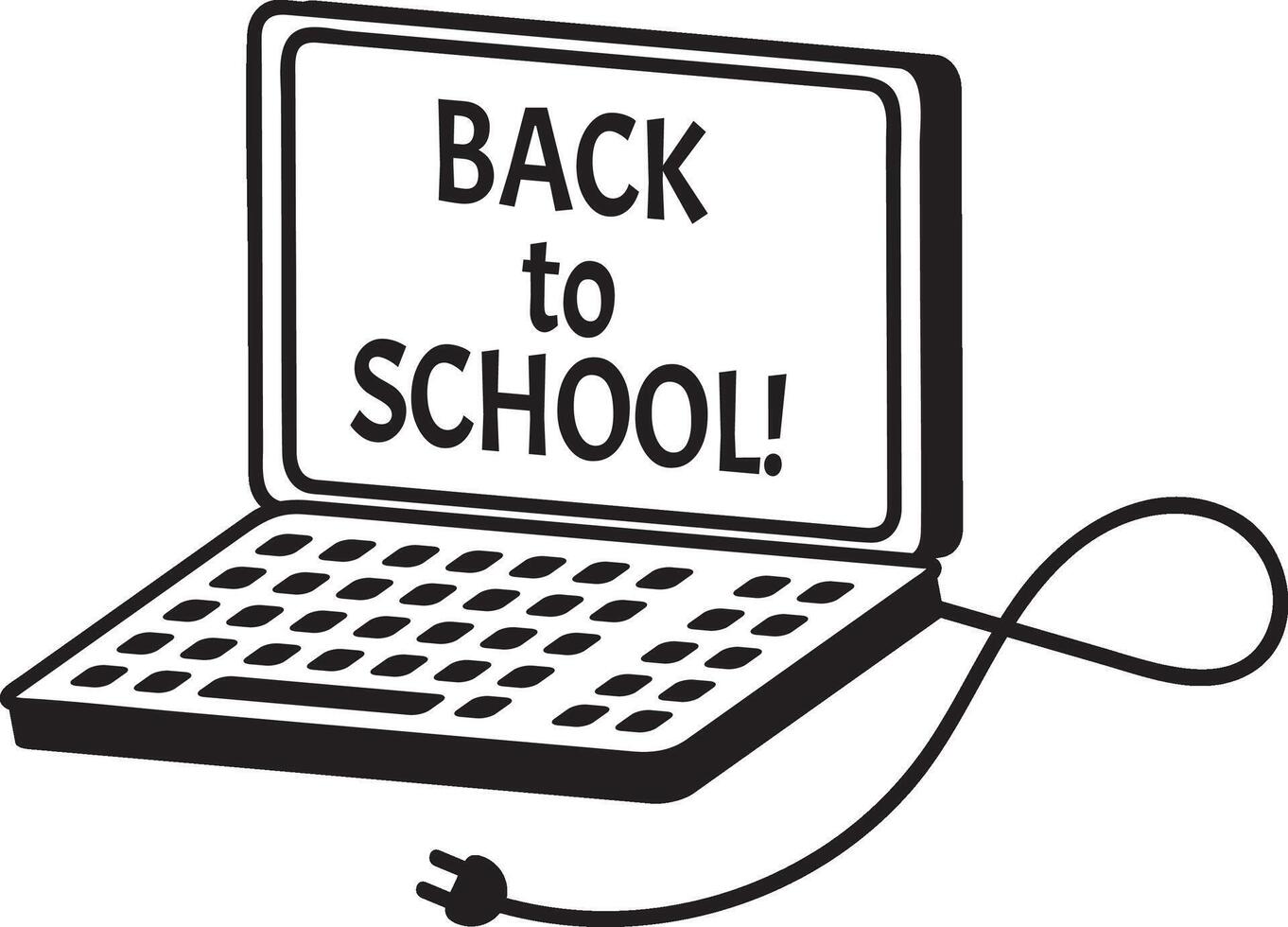 Back to school message on a laptop screen, representing the integration of technology and education in modern learning environments Pro Vector