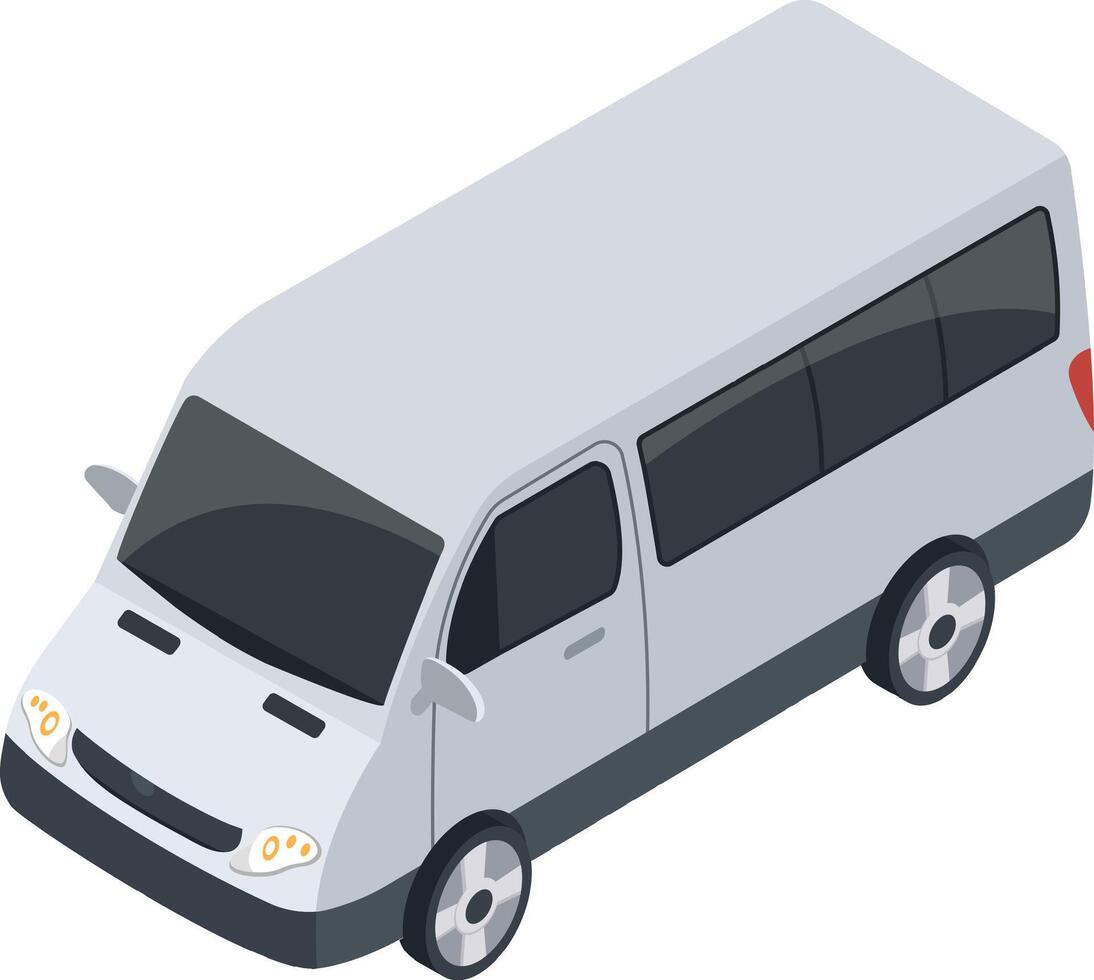 Isometric white minibus driving across a clean white background, illustrating travel and transportation themes while conveying modernity and efficiency for various concepts Pro Vector