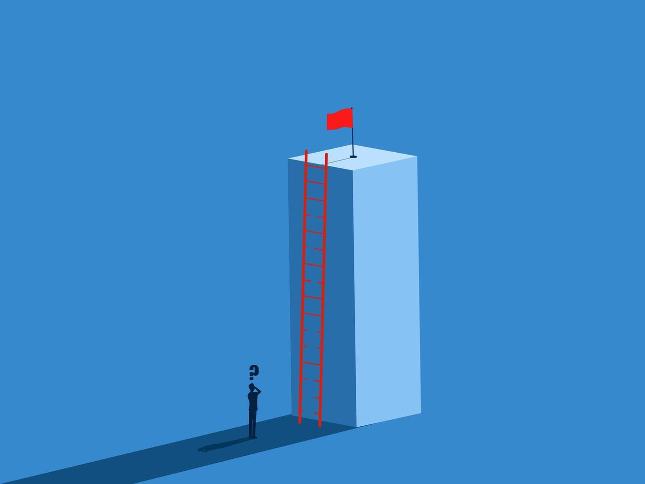 Problem, Obstacle, Businessman thinking of fixing the broken stairs Pro Vector