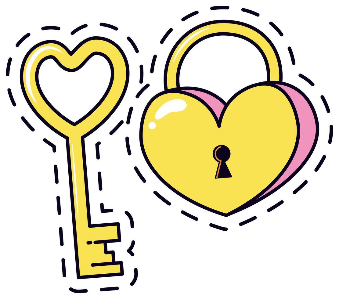 Vibrant illustration featuring a heart shaped lock and key. Perfect for themes of love, security, and romance. Ideal for use in design projects and creative concepts Pro Vector
