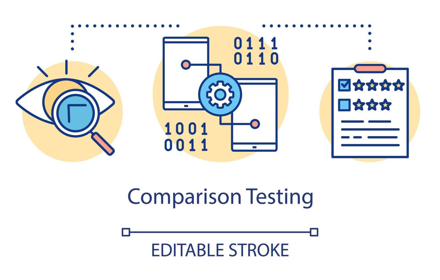 Comparison testing concept icon. Finding differences idea thin line illustration. Software testing process. Indicating issues and problems. Vector isolated outline drawing. Editable stroke Pro Vector