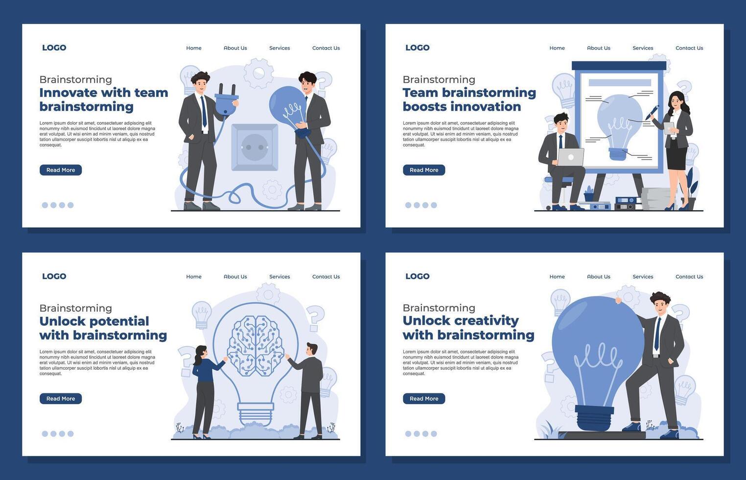 team brainstorming concept idea brainstorming, teamwork, brainstorming. Landing page template. Pro Vector