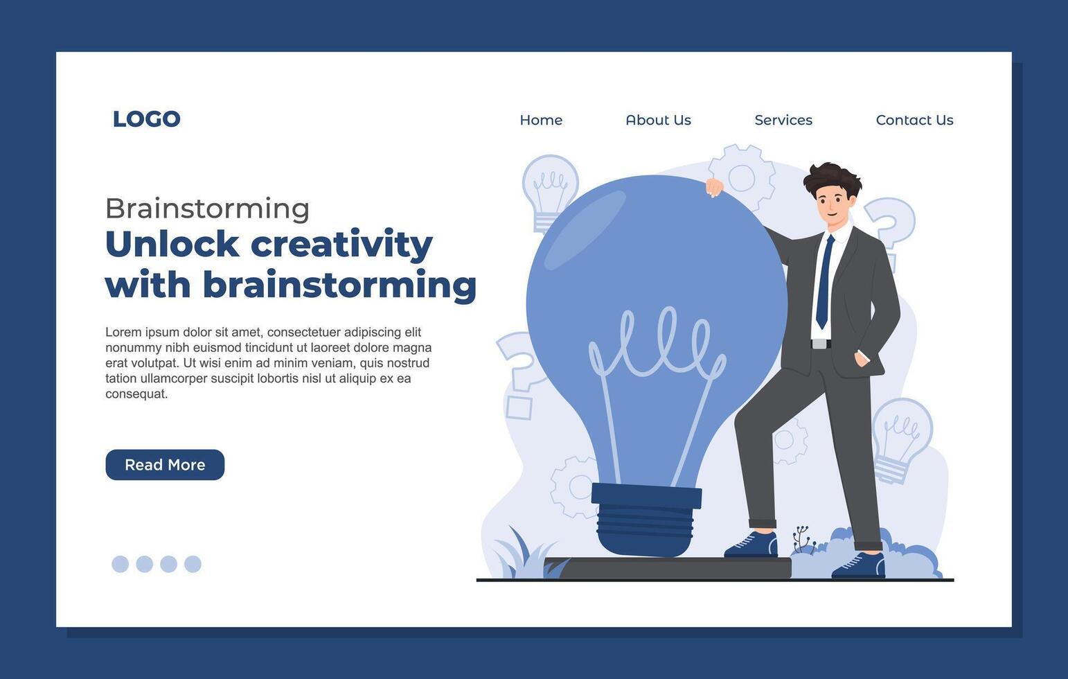 web page design template. Businessman holding big lightbulb. team brainstorming concept idea Pro Vector