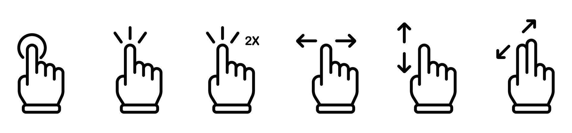 hand clck cursor tap double tap scroll move up down zoom and hold icon bundle Pro Vector