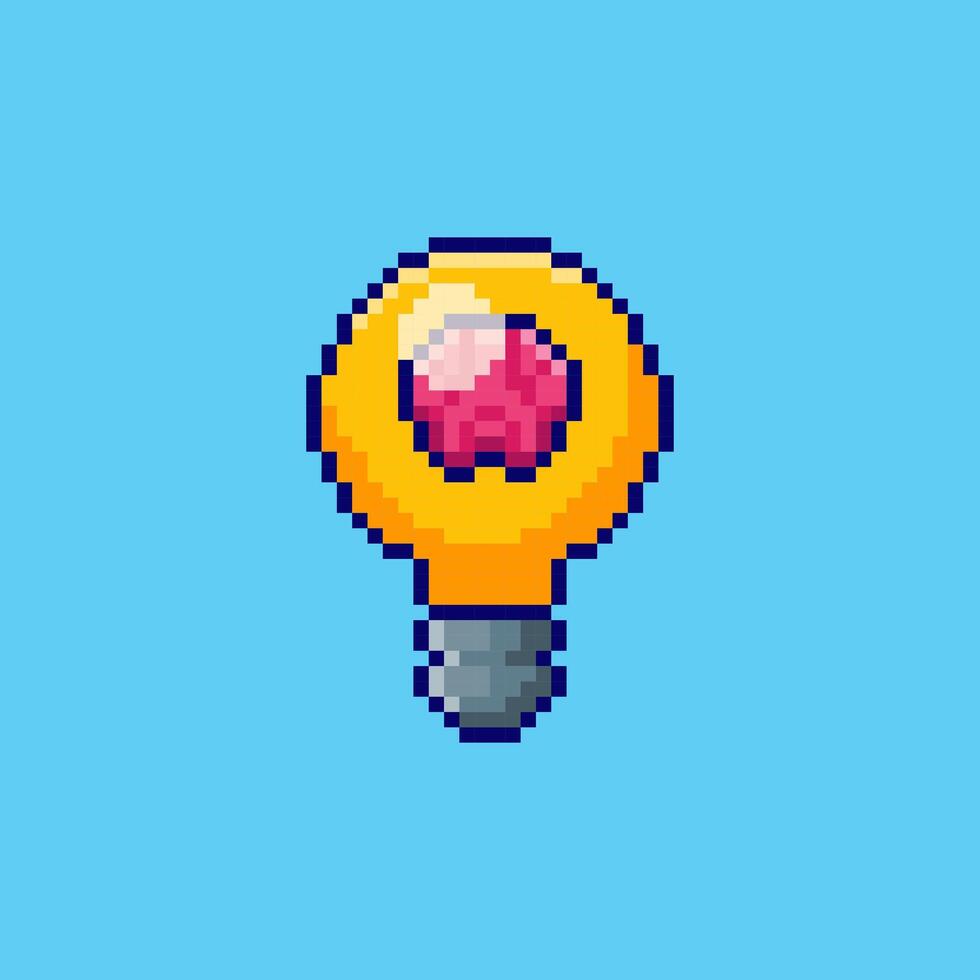 Pixel art Light Bulb With Brain game asset design Pro Vector