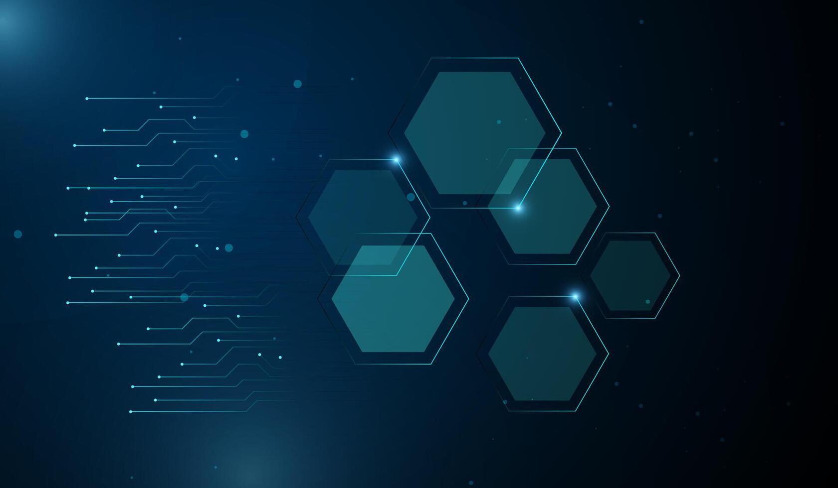 The technology Abstract polygons shape elegant blue light lines on dark background with lighting effect and sparkle for technology concept. illustration Pro Vector