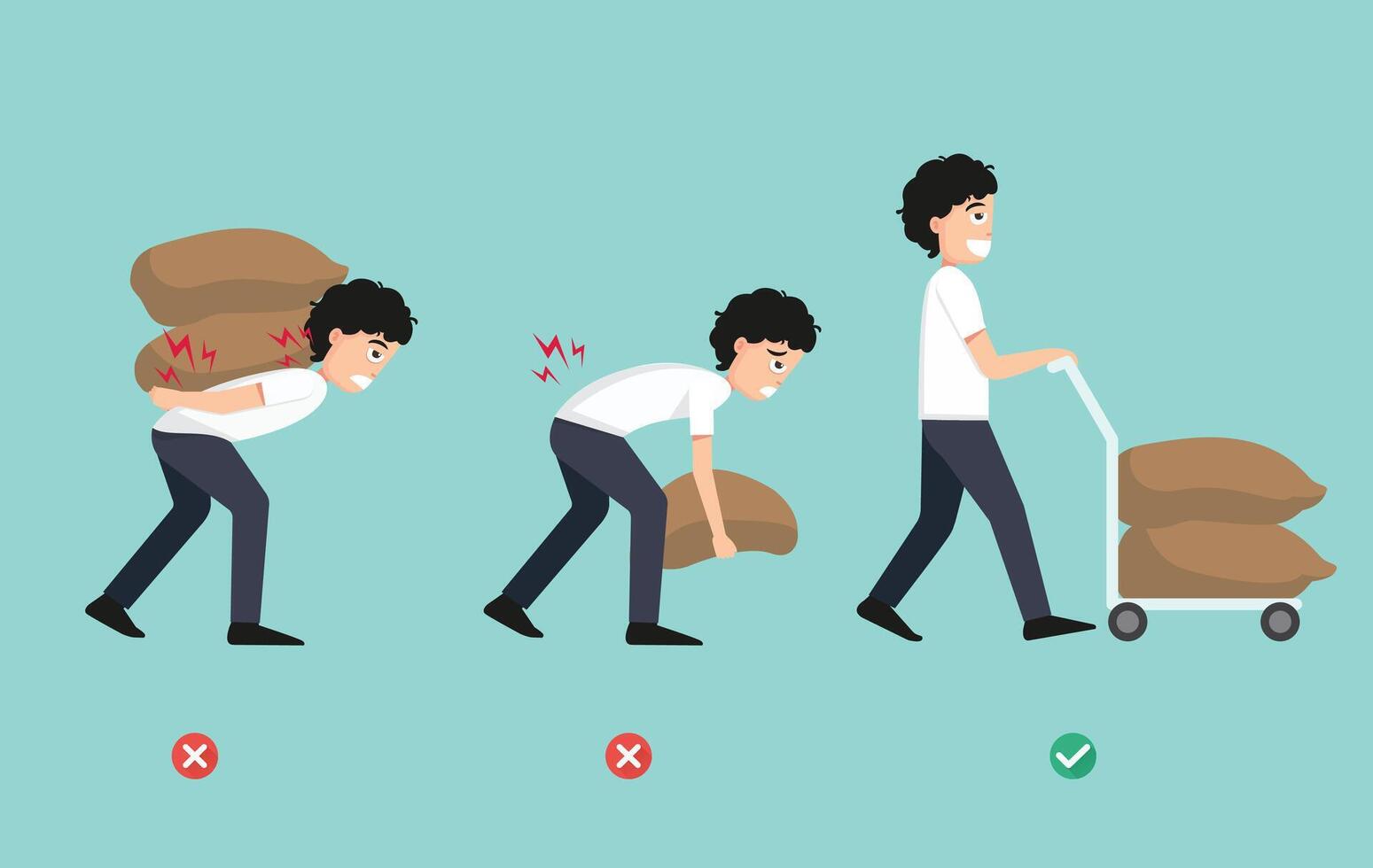 wrong and right carrying position Improper versus against proper lifting body posture Pro Vector