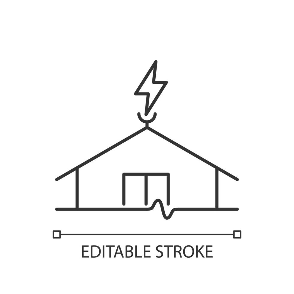 Lightning rod linear icon. Protecting buildings from lightning strike damage. Prevent fire risk. Thin line customizable illustration. Contour symbol. Vector isolated outline drawing. Editable stroke Pro Vector