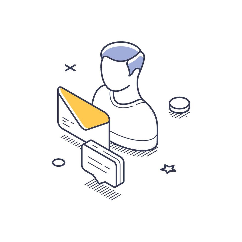Isometric social media interaction icon featuring a user and messaging elements Pro Vector