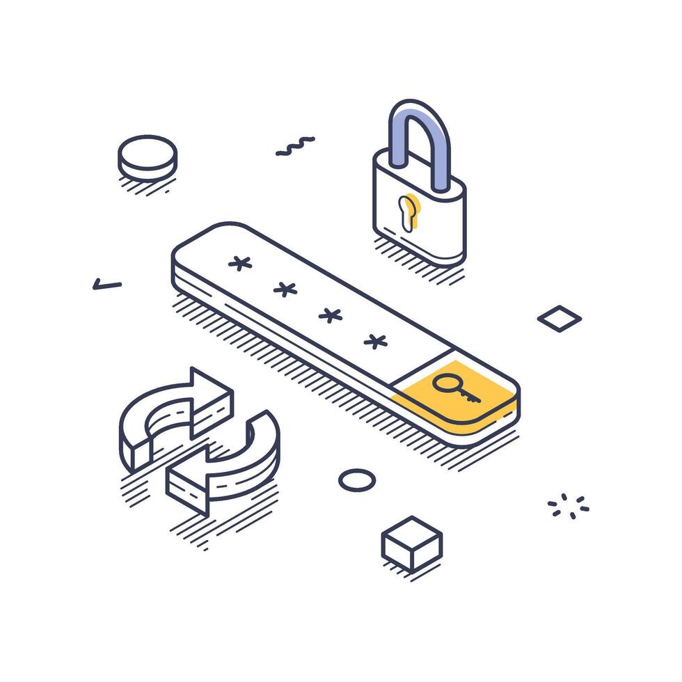 Isometric line art icon representing internet security with padlock and password element Pro Vector
