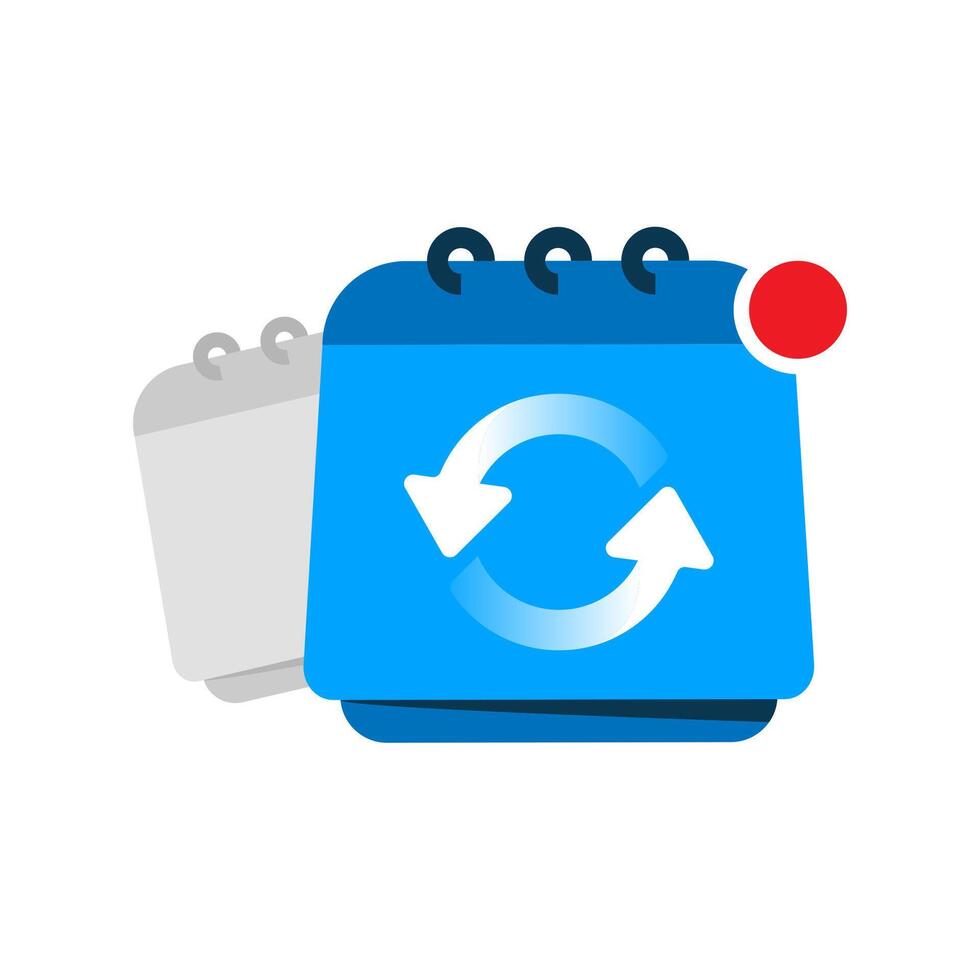 Flat illustration of a calendar with a rotating arrow. symbolizing rescheduling, date changes, recurring events, or time management. Perfect for business, productivity, and planning concepts Pro Vector