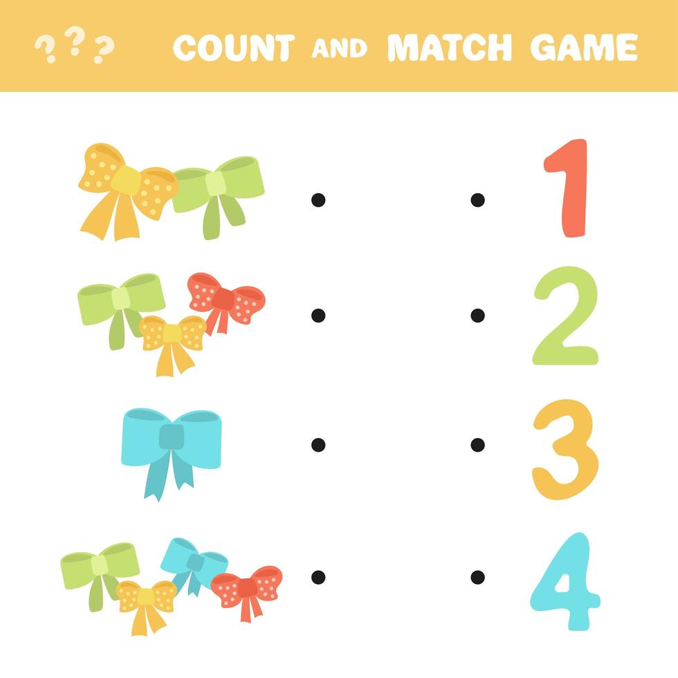 Counting game, count the number of ribbon and connect with the result Pro Vector