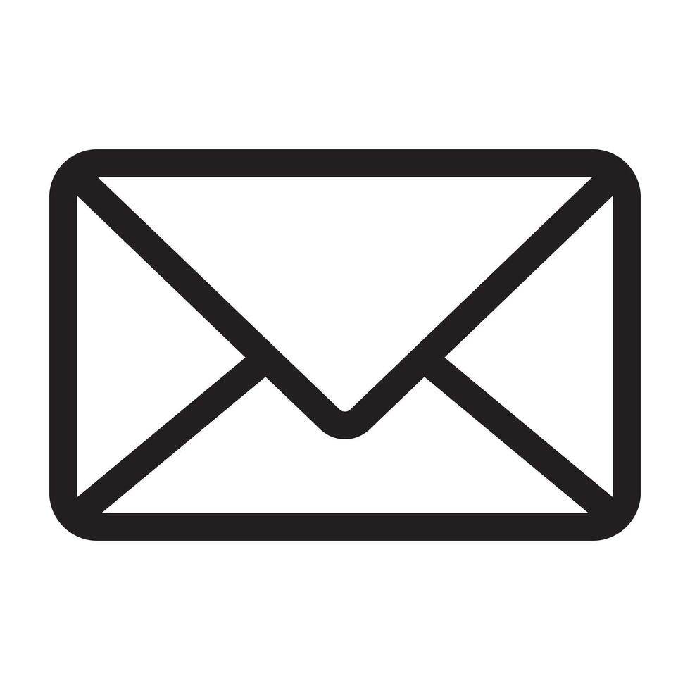 Email icon, message and communication envelope symbol, black and white illustration isolated on white background Pro Vector