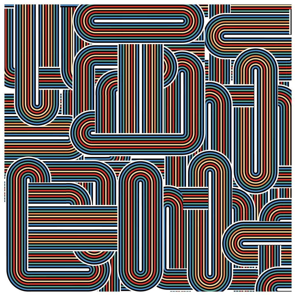 Abstract design featuring layered, curvy lines in shades of teal, red, and black, creating a complex, geometric pattern. Pro Vector