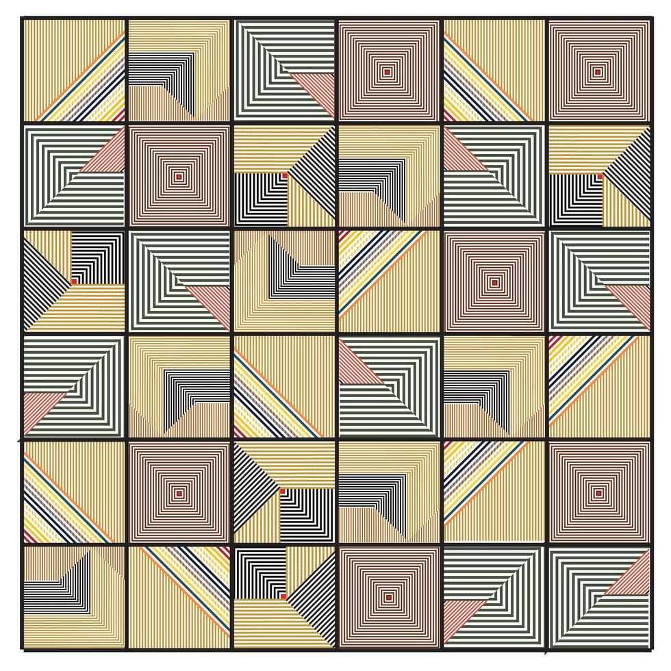 An intricate geometric square print design composed of lines and squares, showcasing a harmonious pattern, Abstract geometric pattern with overlapping striped lines creating a zigzag effect. Pro Vector