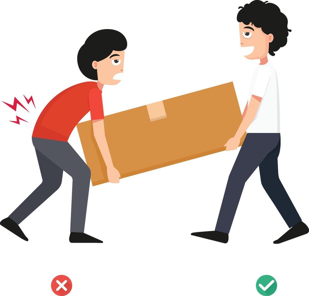 wrong and right carrying position Improper versus against proper lifting illustrationion Pro Vector