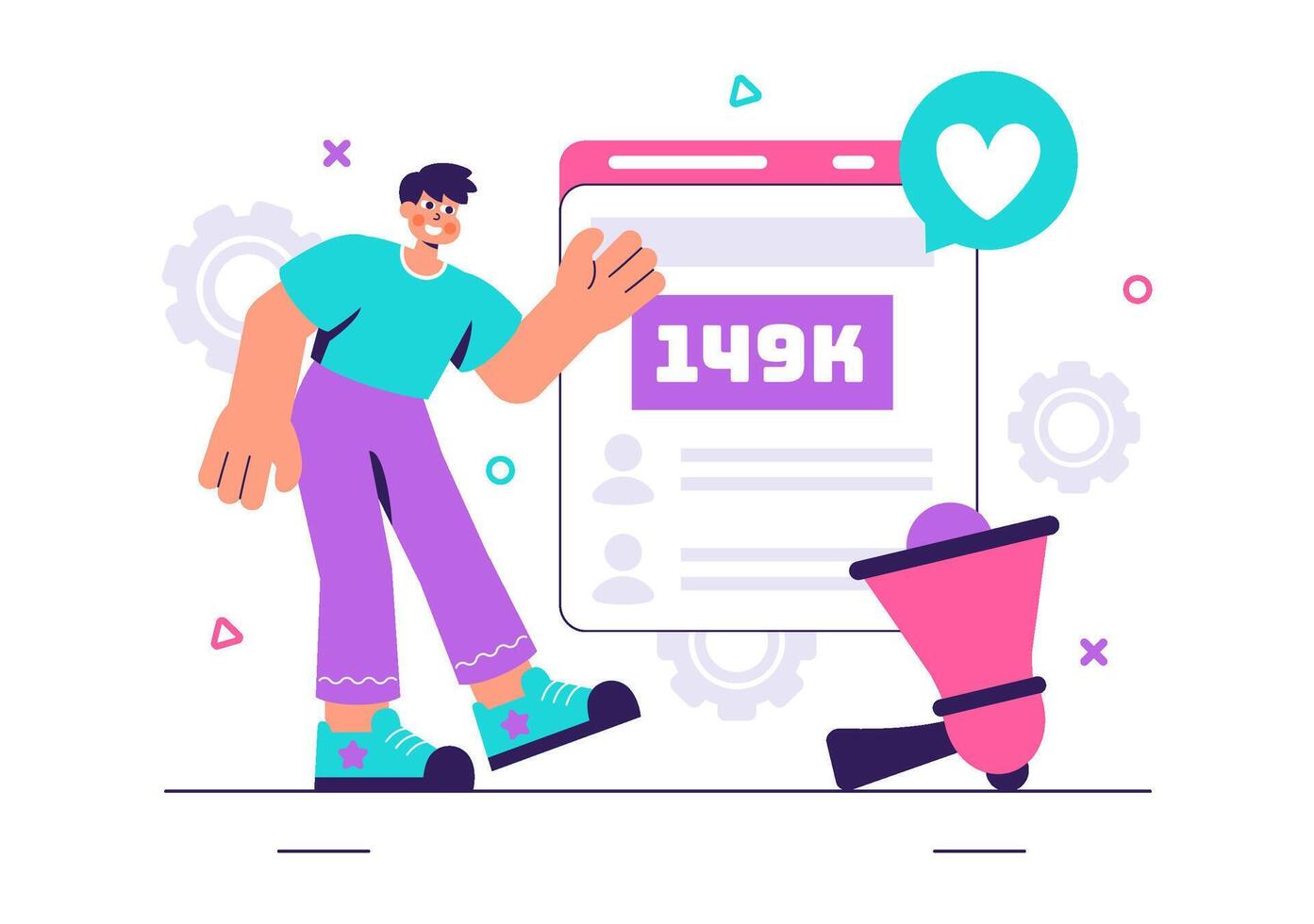 Flat Style Illustration of Online Users Clicking Follow and Like Buttons Pro Vector
