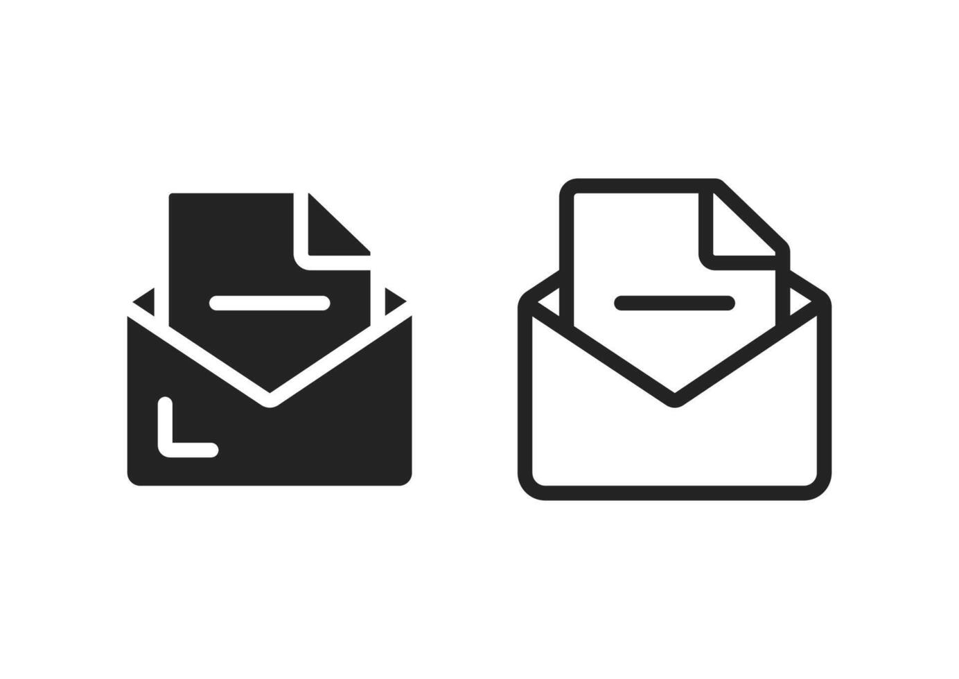 open envelope icon set. solid and outline styles, isolated on white background Pro Vector