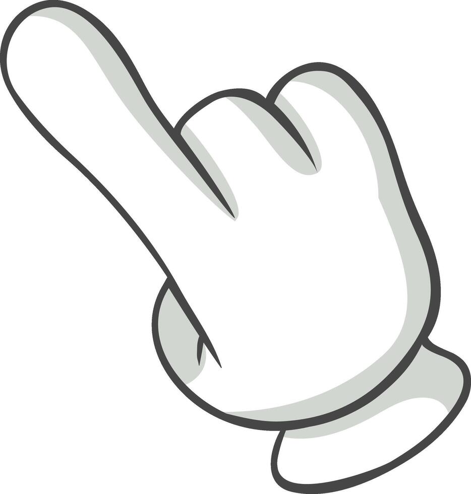 Cartoon hand featuring a white glove, pointing with an index finger to the left side, set against a clean white background, effectively conveying direction and communication Pro Vector