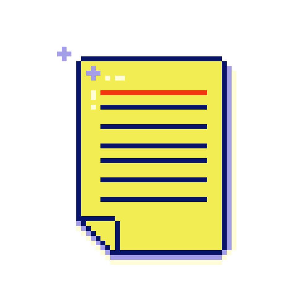 Nostalgic pixel art eight bit paper sheet icon. Y2k retro 90s vaporwave style. Pro Vector
