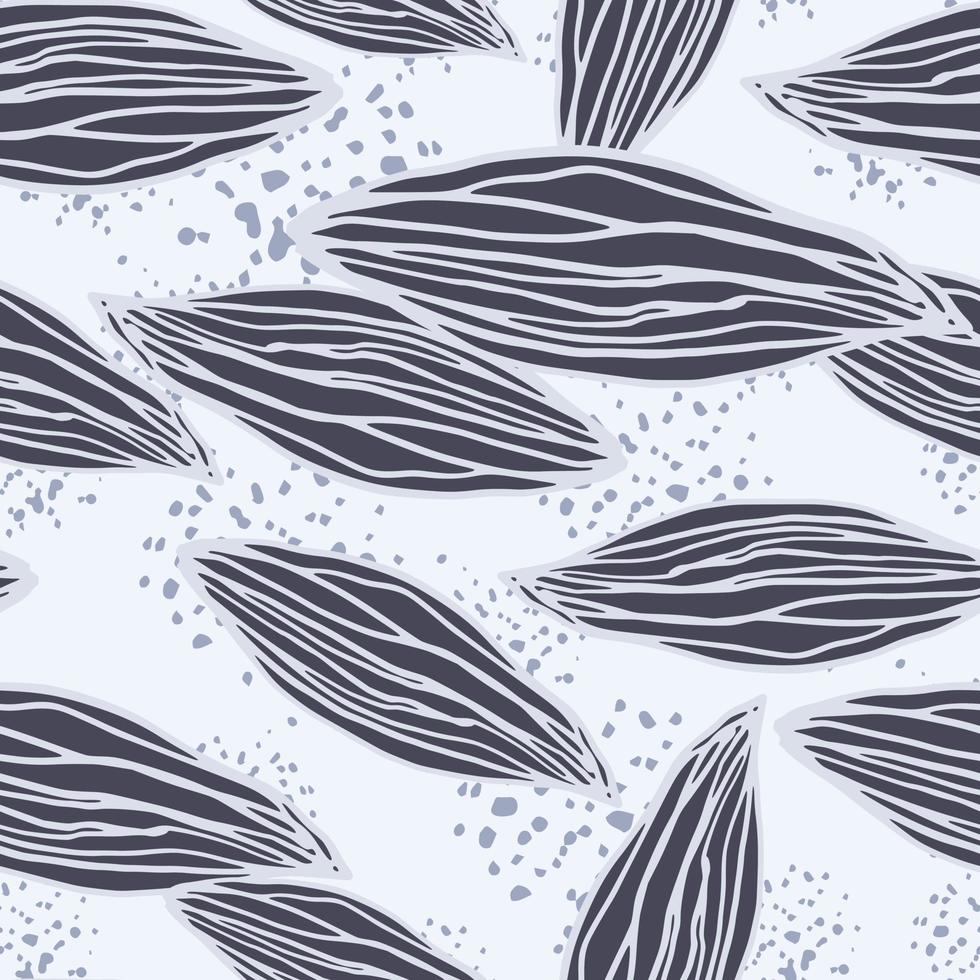 Navy blue leaf random isolated seamless pattern. White background with splashes. Simple backdrop. Pro Vector