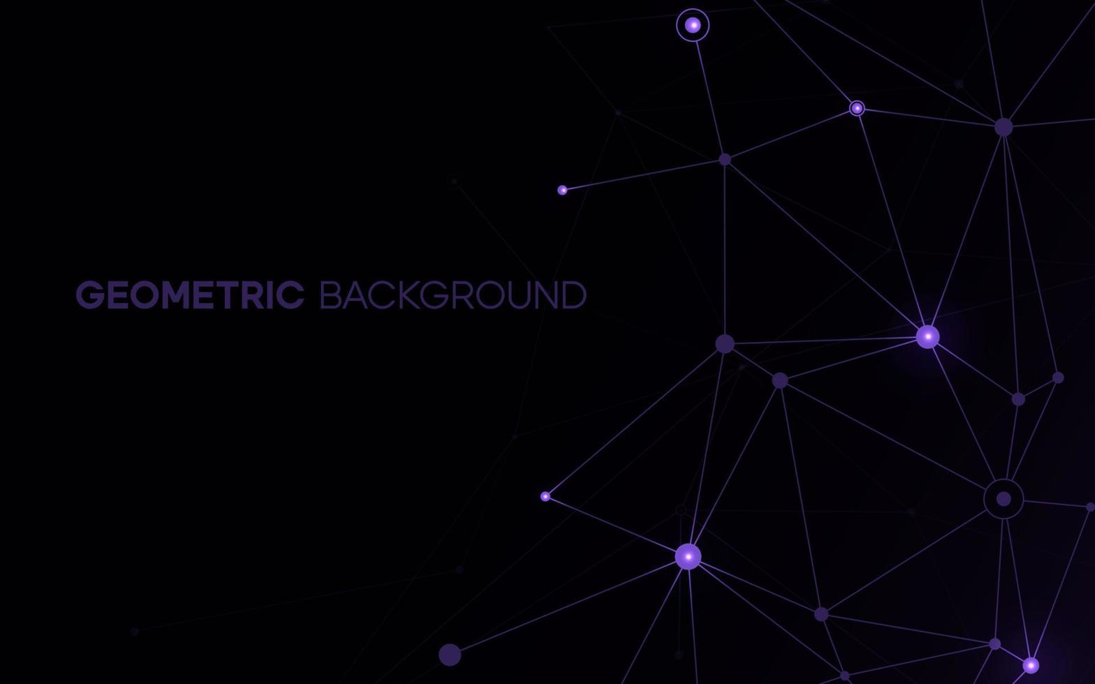 Geometric web background illustration. Purple plexus line network concept. Polygon scientific design texture Pro Vector